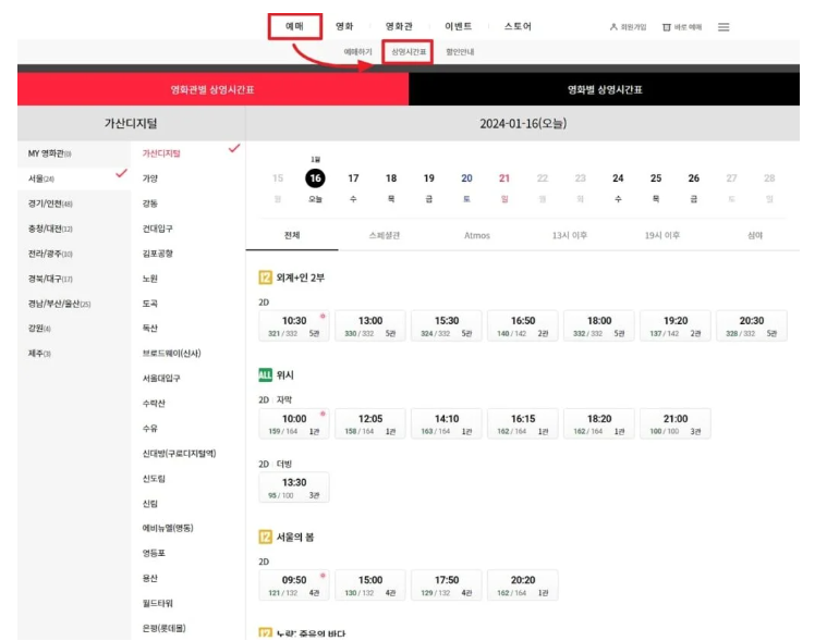 2. 상영시간표 확인 방법