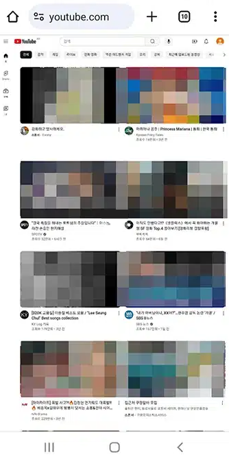 이후 주소창에 유튜브 URL을 직접 입력합니다. 반드시 유튜브 URL을 직접 입력해야 유튜브 앱이 아닌 PC버전으로 유튜브 시청이 가능합니다.