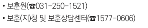 - 주소지 관할 보훈지(방)청 및 보훈 상담 센터