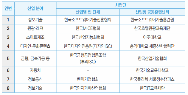 • 산업별 협·단체와 공동훈련센터가 1:1 매칭된 사업단 선정