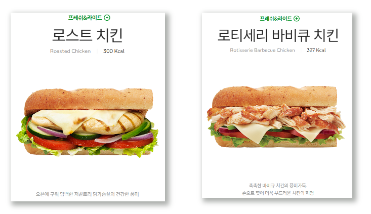 서브웨이는 전 세계 104개국에 40,000개 이상의 매장을 보유하고 있으며 샌드위치에 들어가는 속재료는 물론 빵, 소스, 채소까지 입맛에 맞게 더하거나 빼고 고를 수 있습니다. 특히, 서브웨이는 주문과 동시에 제조과정을 전부 투명하게 지켜볼 수 있으며 실시간으로 메뉴를 고를 수 있는것이 유명해 음식 제조 과정의 신뢰성을 더 높이는 매장입니다. 서브웨이는 타 패스트푸드에 비해 건강하다는 것을 강조하는 브랜드인데요, 그 광고에 걸맞게 맛이 좋지만 열량이 낮아 다이어트에도 도움이 되는 메뉴들이 많습니다.