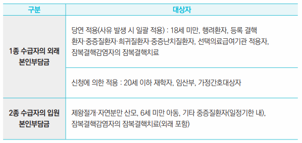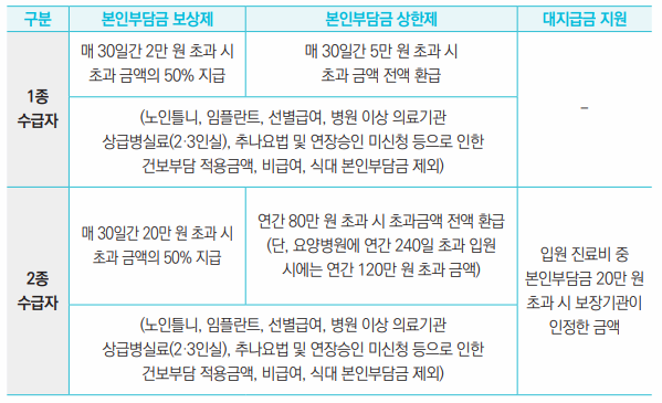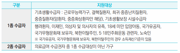 - 의료급여수급자를 1종, 2종으로 구분해 지원