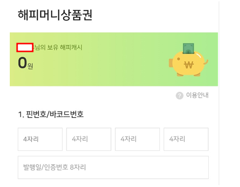 8) 로그인을 하게 되면, 본인이 보유중인 해피머니 캐시와 충전을 얼마나 할것인지 입력할 수 있습니다.