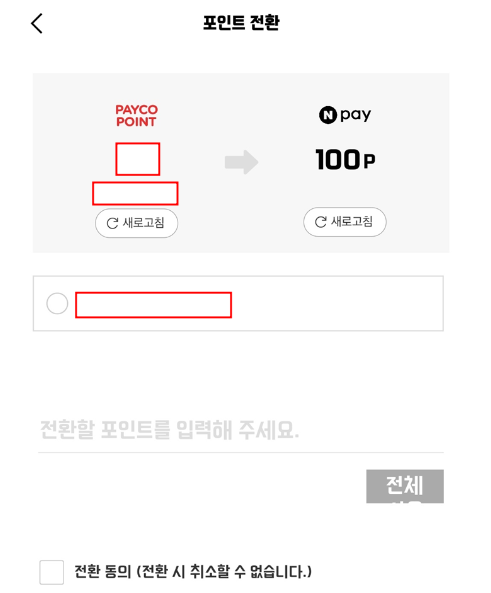 11) 네이버페이 포인트를 클릭 후, 전환할 포인트를 입력합니다.