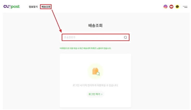 CU 편의점 홈페이지에서 배송조회를 클릭 후 운송장번호를 입력하면 조회가 가능하며, 하단의 이미지를 클릭하시면 홈페이지로 이동됩니다.