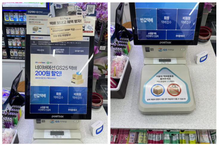 GS25와 동일하게 회원/비회원으로 접수가 가능하며 앱이나 홈페이지를 통해 예약을 한 뒤 CU 편의점에서 기기를 통해 중량 측정 후 상품 종류와 운임을 확인 후 운송장을 출력하면 됩니다.