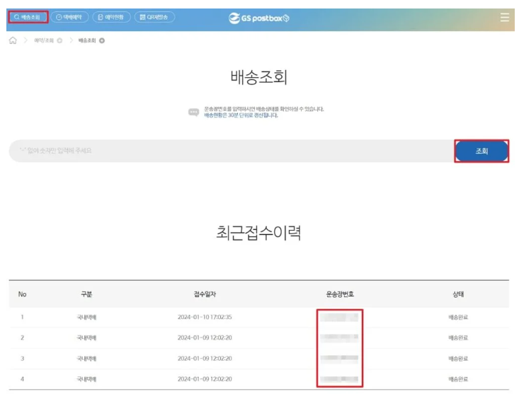 GS25 편의점 택배를 통해 택배를 보낸 경우 홈페이지에서 운송장번호를 입력하여 배송조회를 할 수 있으며, 회원으로 예약하여 접수한 경우 운송장번호를 클릭하여 바로 조회가 가능하며, 하단의 이미지를 클릭하시면 홈페이지로 이동됩니다.