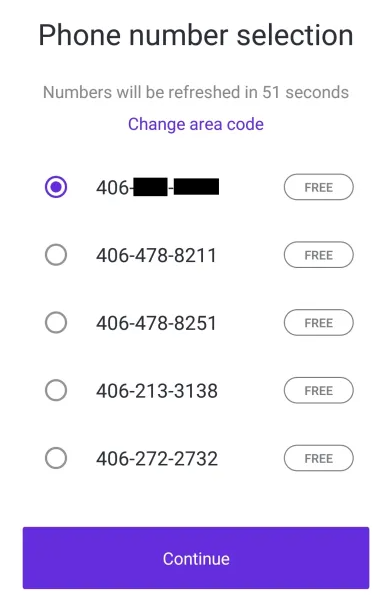3) 계정 생성 후 가상 전화번호를 생성하고자 하는 지역의 번호를 입력합니다.
